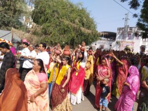 वृन्दावन से आए पंडितों ने मंत्रोच्चार के साथ कलश कुंवारी कन्याओं और महिलाओं के सिर पर धारण करवाए। लाल चूनरी ओढ़े महिलाएं उल्लासित नजर आई। कथा समिति के संयोजक माणक प्रजापत ने बताया कि, श्री धाम वृन्दावन के सुविख्यात कथा वाचक पंडित कमलकांत पाराशर महाराज, सदानंद महाराज और अन्य पंडितगण कलश यात्रा में रथ पर सवार थे। कथा समिति प्रवक्ता सोमप्रसाद साहिल से प्राप्त जानकारी के अनुसार शिव महापुराण पोथी को अपने सिर पर धारण कर कपूरचंद प्रजापत कलश यात्रा के आगे- आगे चल रहे थे। ढोल ताशों और डीजे की धमचक के साथ थिरकते युवा कलश यात्रा में आनन्द ले रहे थे। गौशाला मंत्री डॉ रवि शर्मा ने कलश यात्रा की रवानगी के समय उपस्थित रह कर समिति का प्रतिनिधित्व किया। प्रथम दिवस की, शिव महापुराण कथा संकीर्तन के साथ शुरू हुई, जिसमें धर्मप्रेमी जन समुदाय मौजूद था। महिलाओं की अपार भीड़ की उपस्थिति महा शिवपुराण कथा की सफलता बता रही थी। कलश यात्रा में संस्थान के उपाध्यक्ष गेनाराम देवासी, नारायण लाल घांची, कोषाध्यक्ष पूनम सिंह पंवार, अशोक अग्रवाल, अल्पेश माली, दिनेश परिहार, नारायण देवासी, रमेश प्रजापत, कानाराम, चम्पा लाल, कैलाश प्रजापत, दूदाराम, भंवर लाल, हजारी मल लोहार आदि व्यवस्था संभाल रहे थे।