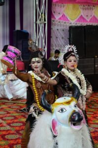 संस्थान के सांस्कृतिक मंत्री सोमप्रसाद साहिल से प्राप्त जानकारी के अनुसार गणपति वन्दना और गुरु वन्दना के साथ कार्यक्रम का आगाज युवराज रावल ने किया। रेखा सुथार ने, भोलेनाथ ने मनावण आया, भगवान शंकर के स्याल्दे के साथ कई लोकप्रिय भजनों से ऐसा समा बांधा कि, पंडाल में उपस्थित महिला श्रद्धालुओं ने जमकर नृत्य किया। मनजीत मधुर ने नगर में जोगी आया गाकर शिव और कृष्ण की लीला का वर्णन किया। माताजी के भजन के साथ मधुर ने कार्यकर्ताओं को नाचने पर मजबूर कर दिया। नरेंद्र आचार्य ने, नोपत नगारा ढोल, हक मत पकड़ो पार्वती और आज तो मारे भोले बाबा आदि भजन सुनाकर सभी को मंत्रमुग्ध किया, साथ ही सभी को थिरकाया। मथुरा आर्ट ग्रुप के झांकी कलाकारों ने शिव- पार्वती विवाह की सुन्दर झांकी प्रस्तुत कर बच्चों और महिलाओं को खूब नचाया। कार्यक्रम का सफल संचालन फालना के भंवर परिहार ने किया। संस्थान अध्यक्ष रमेश मंडोरा, उपाध्यक्ष नारायण लाल घांची, गेनाराम देवासी, अशोक अग्रवाल, कोषाध्यक्ष पूनम सिंह पंवार आदि ने मंदिर और कथा कार्यक्रम में सहयोग के लिए भामाशाहों का सम्मान किया। भजन कार्यक्रम में संस्थान के व्यवस्थापक सतपाल सिंह राठौड़, दिनेश परिहार, रमेश प्रजापत, किस्तूर घांची, प्रदीप प्रजापत, नारायण देवासी, कैलाश घांची, हेमाराम देवासी, चम्पा लाल, प्रेम सिंह पंवार, भंवर लाल, कैलाश कुमार, प्रदीप प्रजापत आदि का आयोजन में विशेष सहयोग रहा।