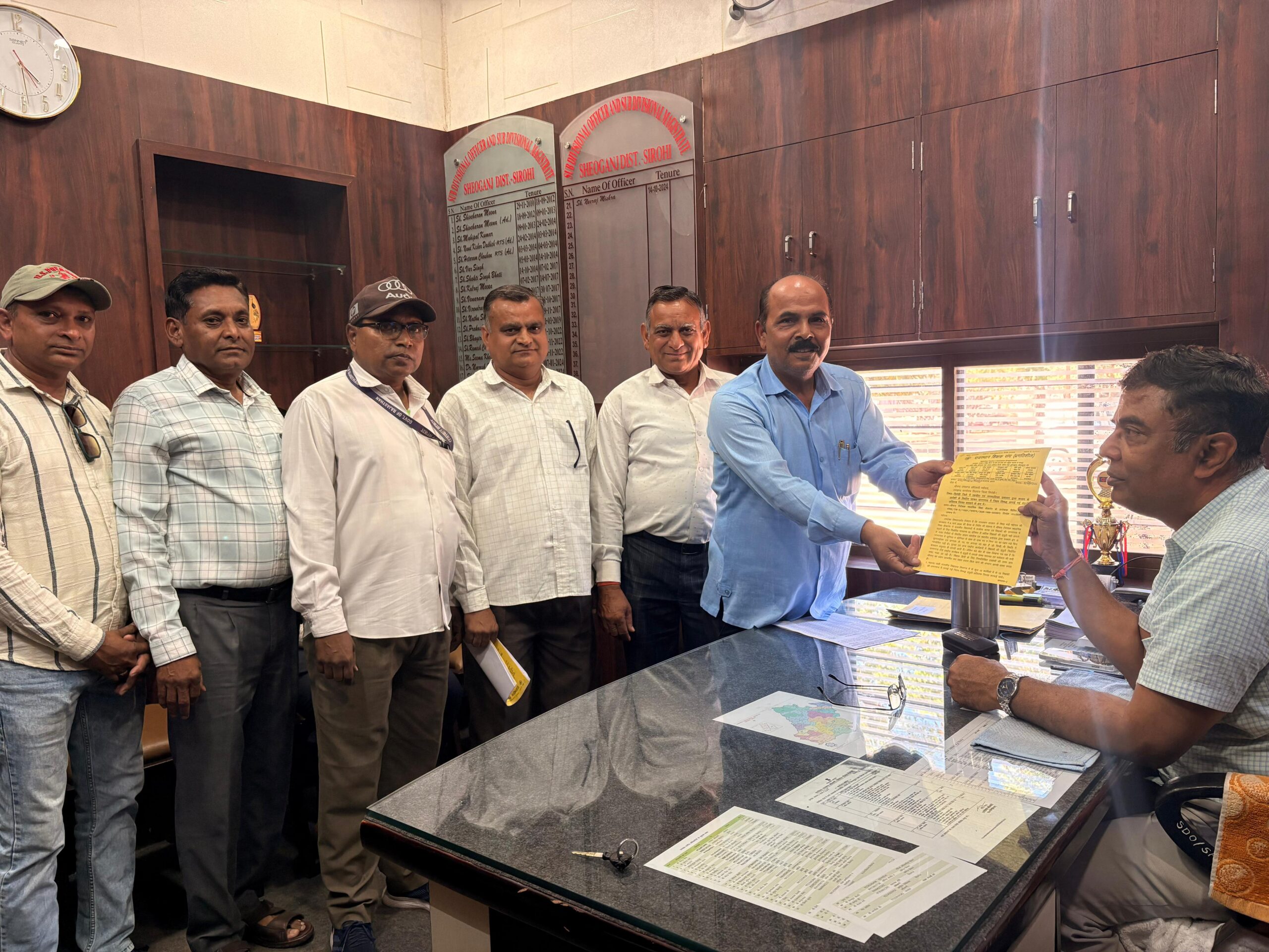 शिवगंज-जनगणना में प्रगणक ड्यूटी में मनमाने ढंग से लगाई गई ड्यूटी को लेकर राजस्थान शिक्षक संघ (प्रगतिशील) के प्रदेश मुख्य महामंत्री धर्मेंद्र गहलोत के नेतृत्व में प्रतिनिधि मंडल ने एसडीएम नीरज मिश्र, तहसीलदार आशुराम राणा, अधिशासी अधिकारी आशकरण सिंह नगर पालिका शिवगंज को ज्ञापन देकर शासन के आदेश के विपरीत जा करके लगाई गई ड्यूटी का विरोध व्यक्त कर अभिलंब निरस्त किए जाने की मांग की अन्यथा संगठन ने आंदोलन की धमकी दी।